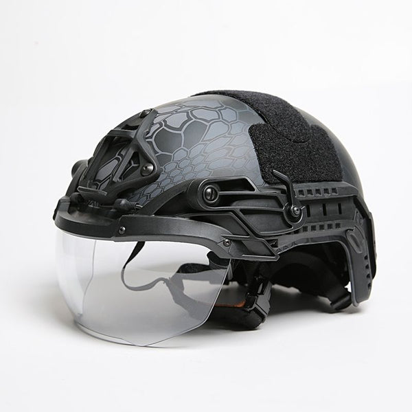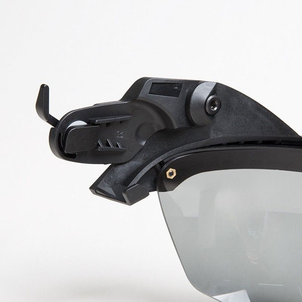 This durable visor can be easily mounted on most helmet rail systems using an ARC rail attachment system. Attaching the visor is quick and simple, and it is designed for easy, adjustable positioning. The visor lens is 3mm thick and has been reinforced with anti-fog and UV protection.